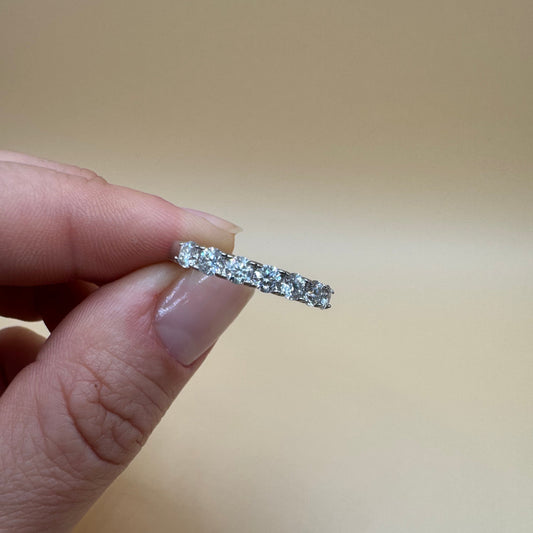 1/2 Aliança em Prata 925 com Banho de Ródio e Moissanites