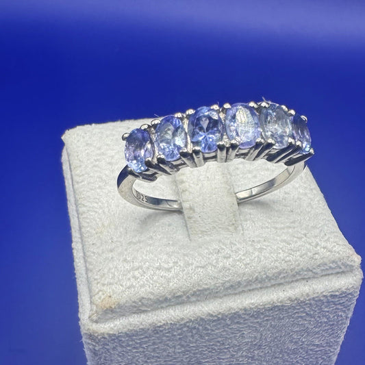 Anel 1/2 Aliança em Prata 925 com Banho de Ródio e Tanzanita