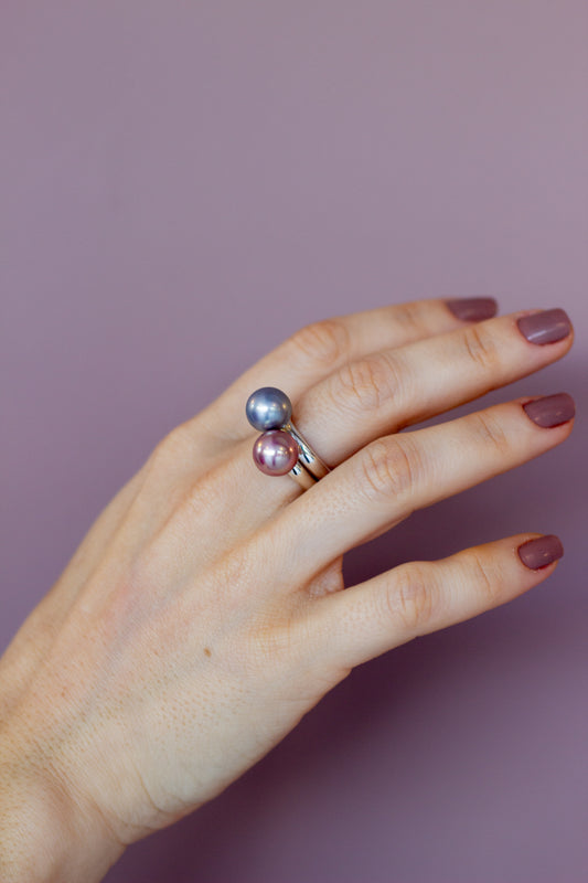 Anel Lunar em Prata 925 com Banho de Ródio e Pérola Cinza Azulada