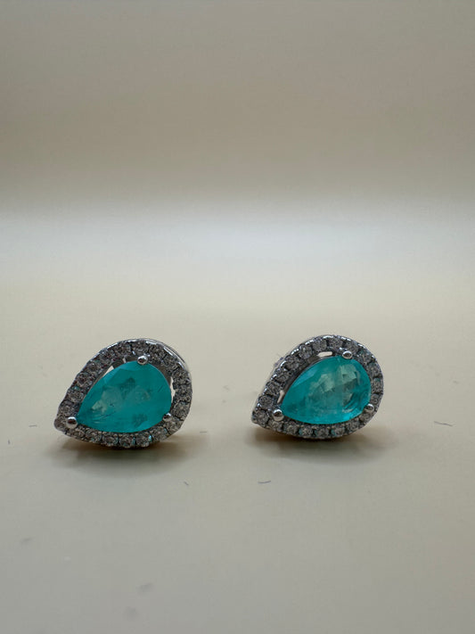Brinco Princesa Gota verde (turmalina paraíba) em Prata 925 com Banho de Ródio