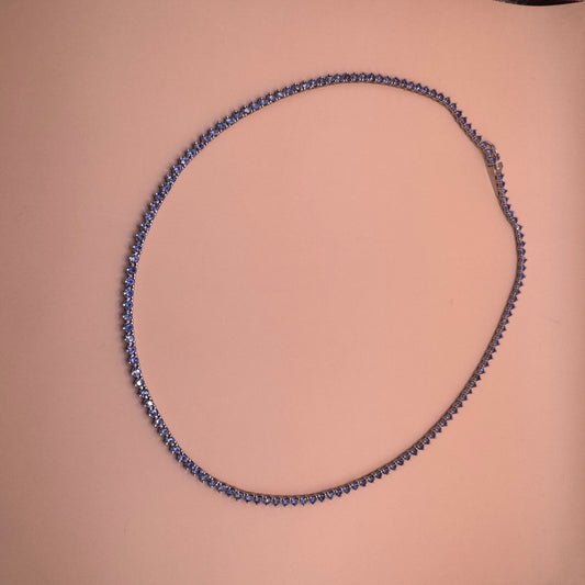Colar Riviera Tanzanita com Lapidação Faca e Banho de Ródio – 46,5 cm