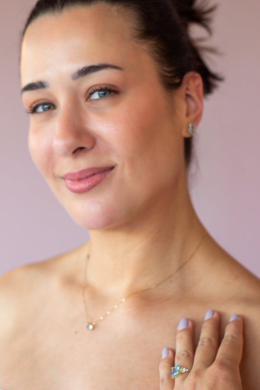 Ponto de Luz Topázio Sky Blue em Ouro 18K
