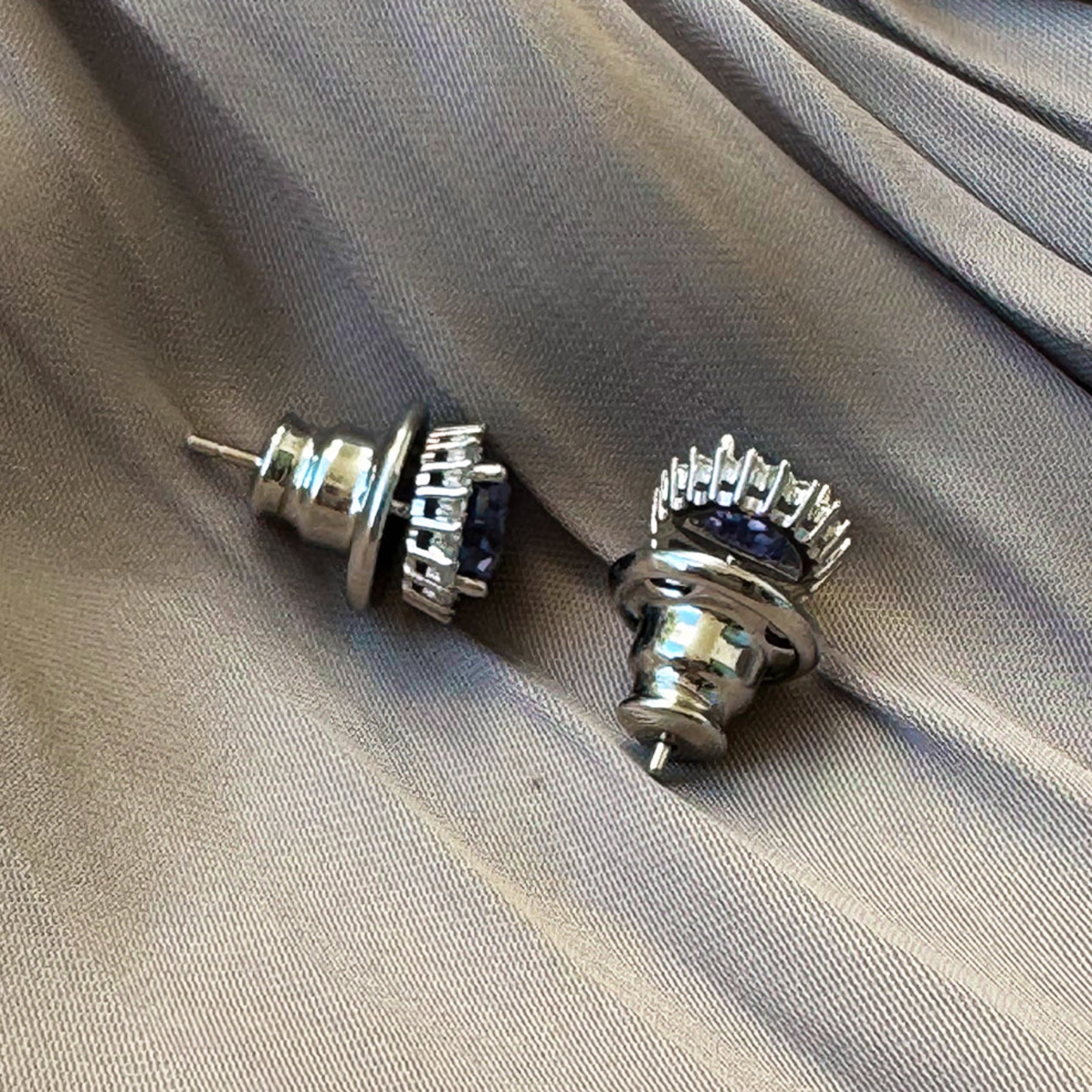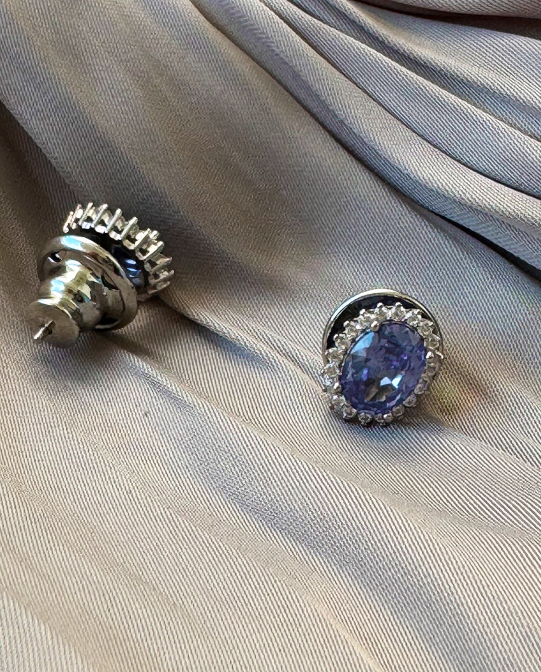 Este elegante brinco em prata 925 com banho de ródio é um convite ao requinte. Seu design clássico destaca uma zircônia na tonalidade tanzanita com lapidação oval, emoldurada por zircônias brancas que ampliam o brilho e criam um contraste sofisticado e atemporal.
