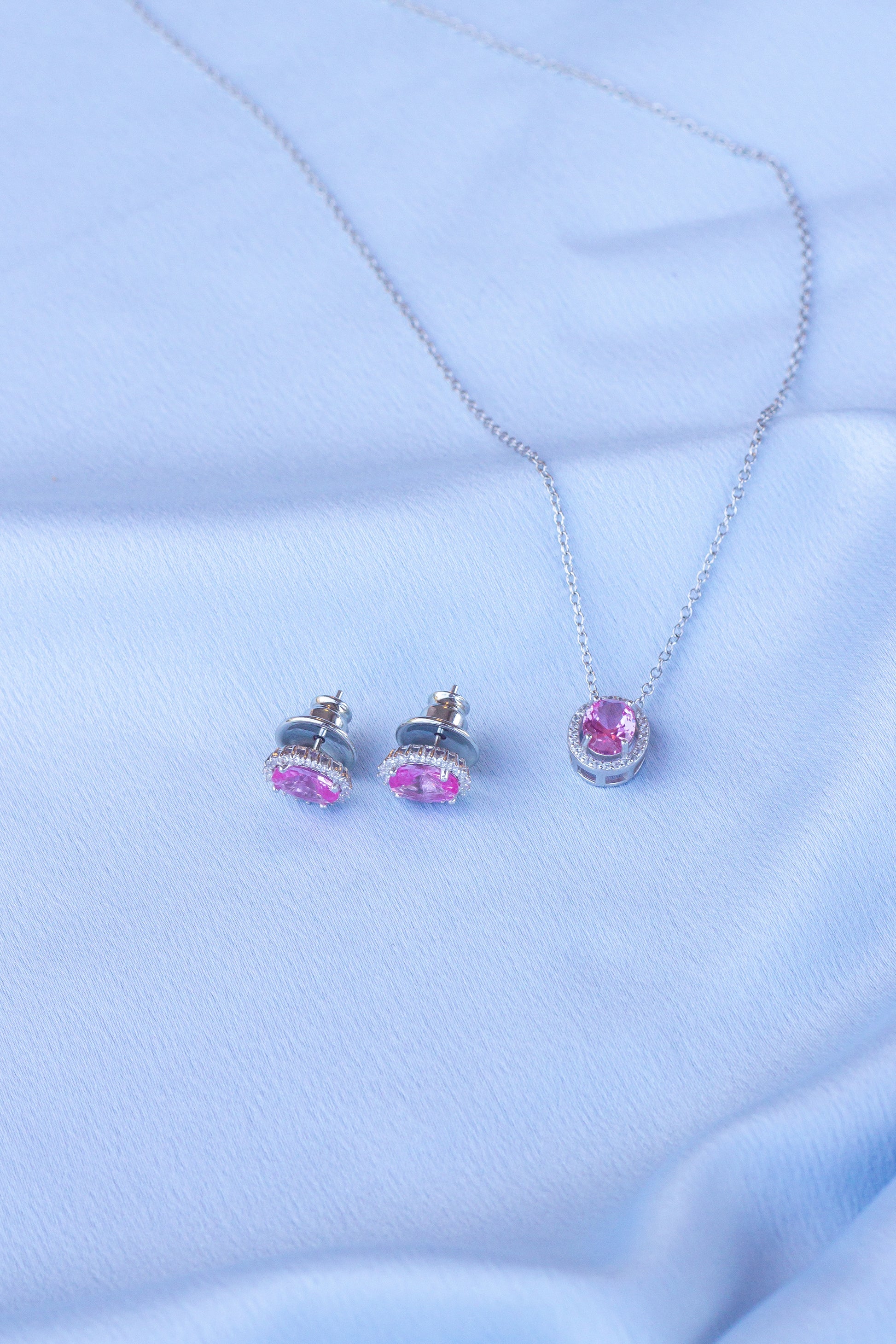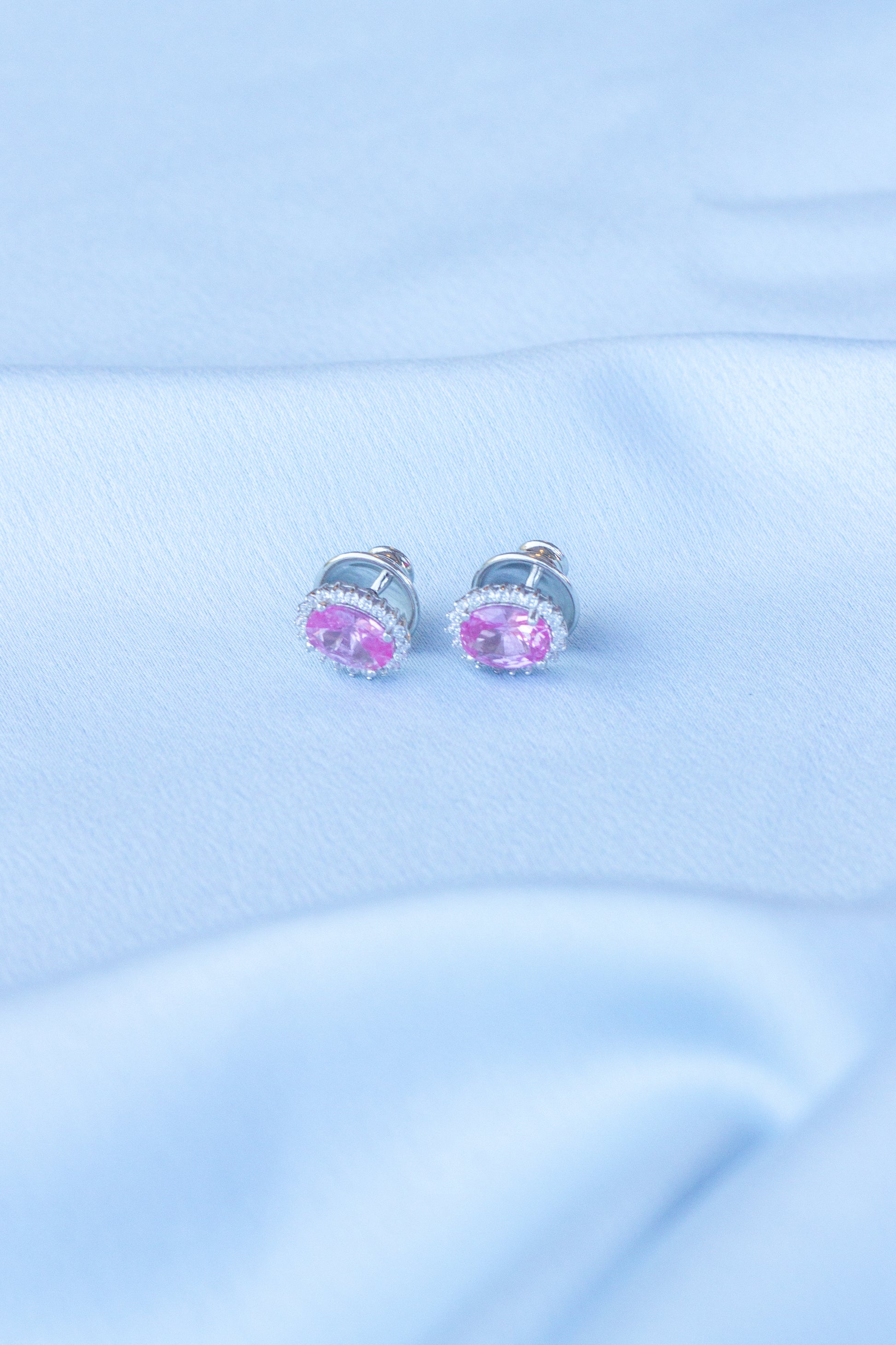 Brinco Princesa Pink Oval em Prata 925 com Banho de Ródio