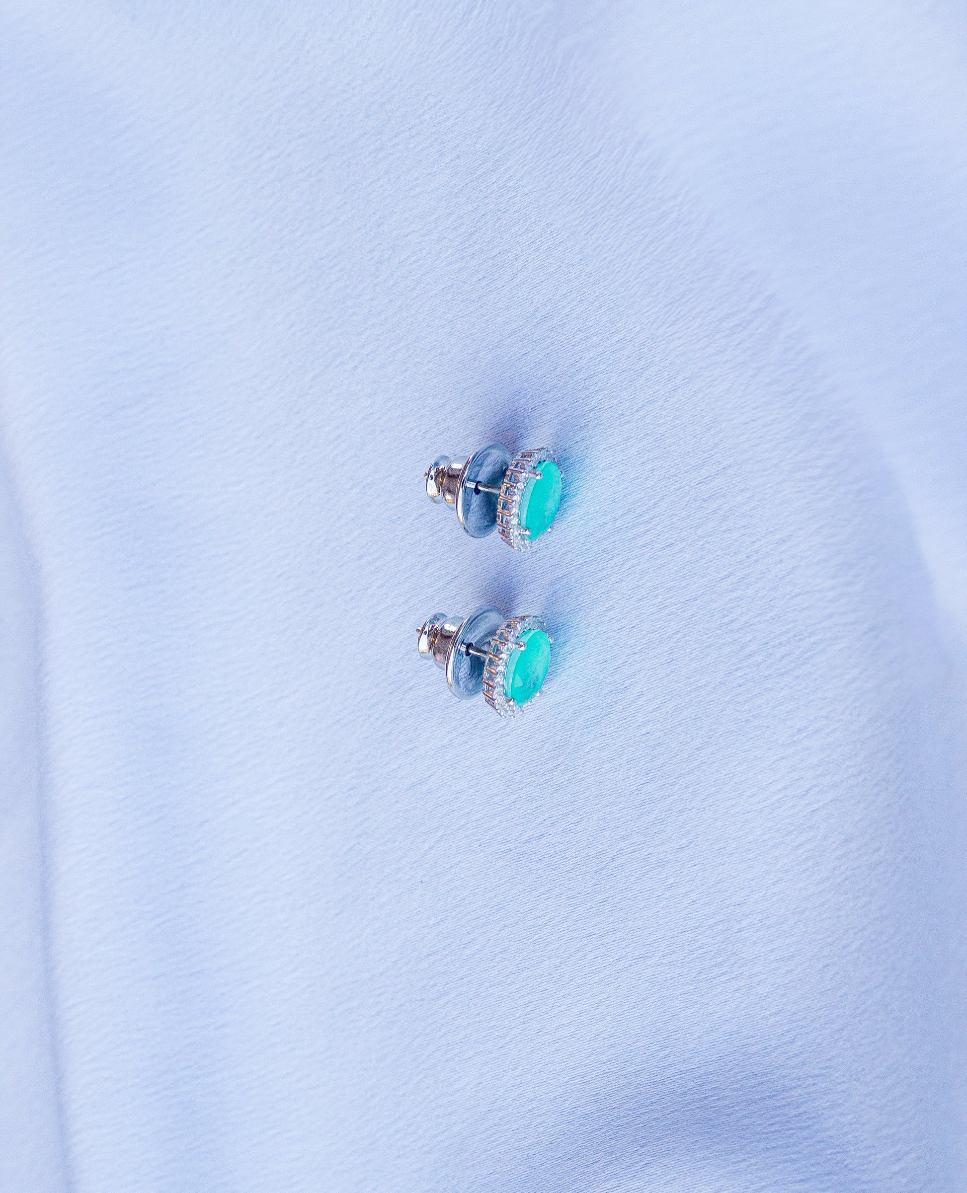 Este elegante brinco em prata 925 com banho de ródio é um convite ao requinte. Seu design clássico destaca uma zircônia na tonalidade verde turmalina paraíba com lapidação oval, emoldurada por zircônias brancas que ampliam o brilho e criam um contraste sofisticado e atemporal.
